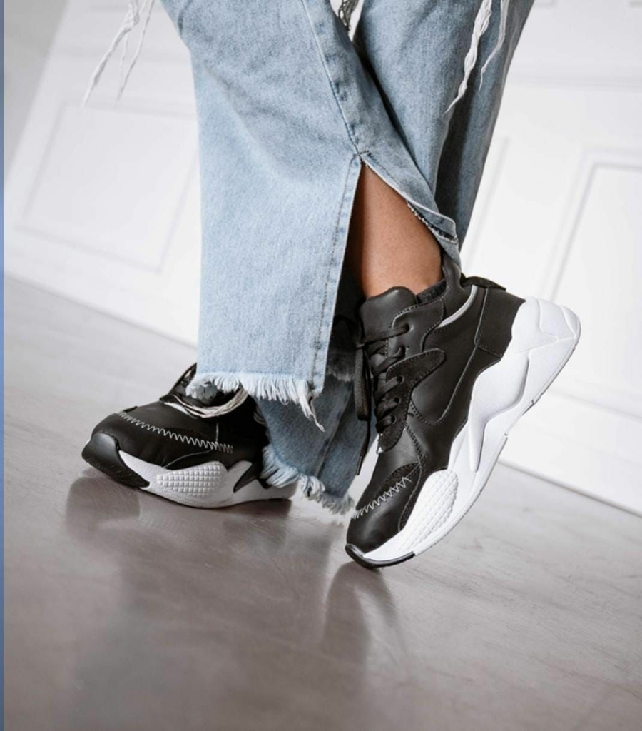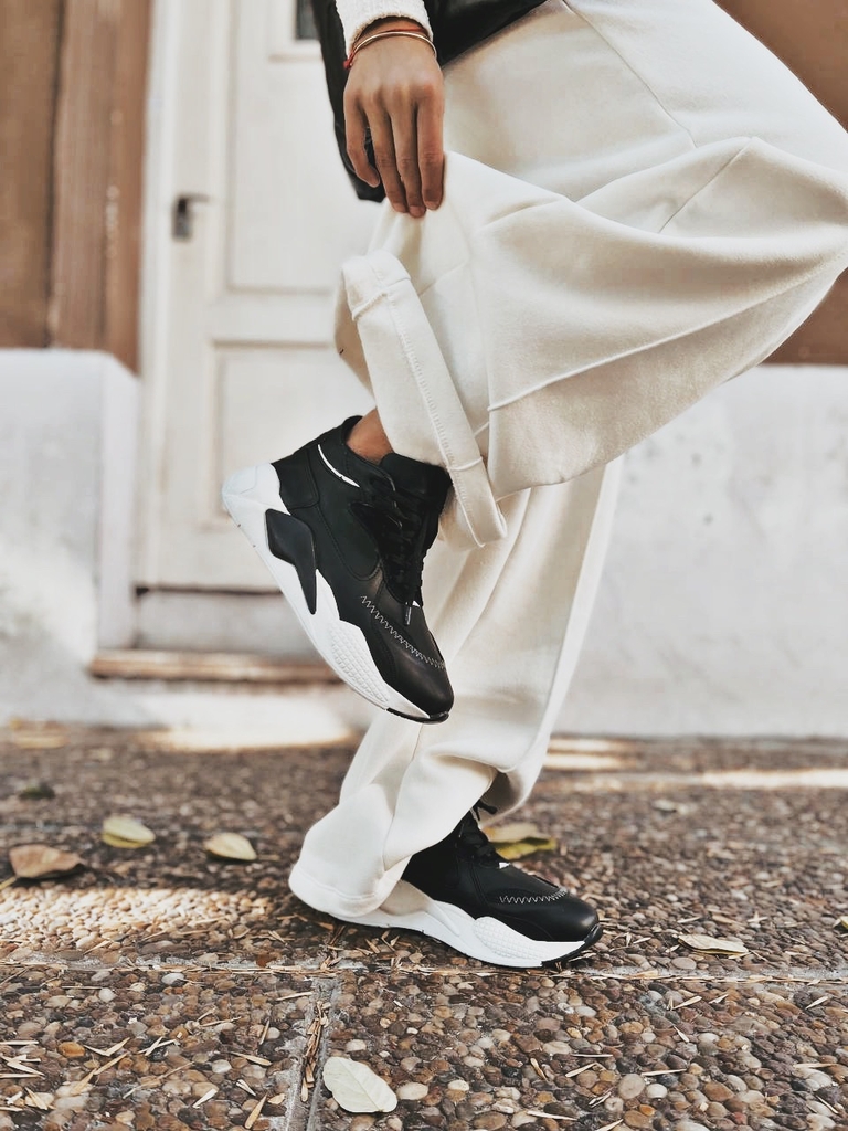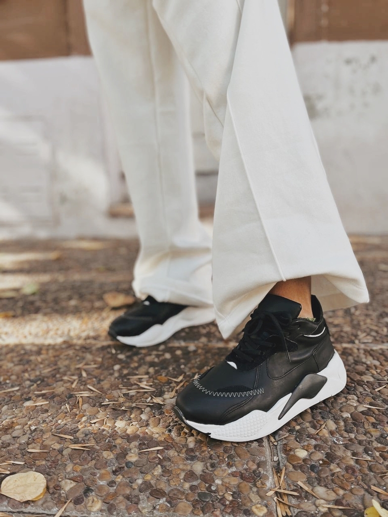 ZAPATILLAS NEGRAS CON DETALLES EN CUERO GAMUZADO.