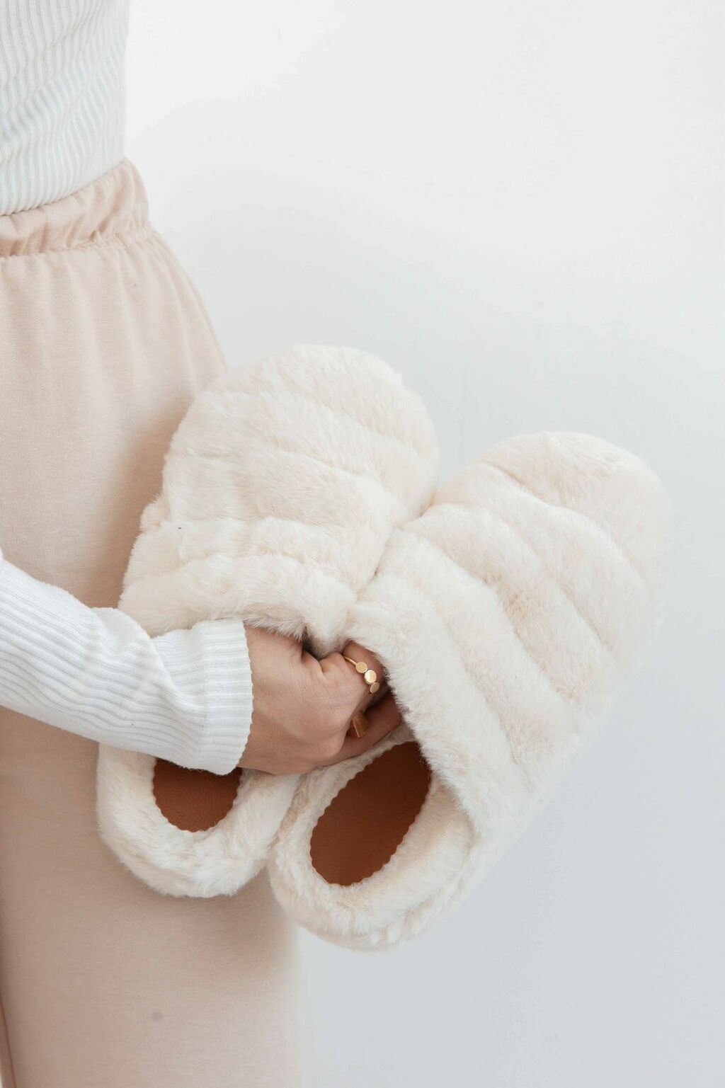 Pantuflas de pelo sintetico super suaveces  y calentitas, cerradas en la puntera.